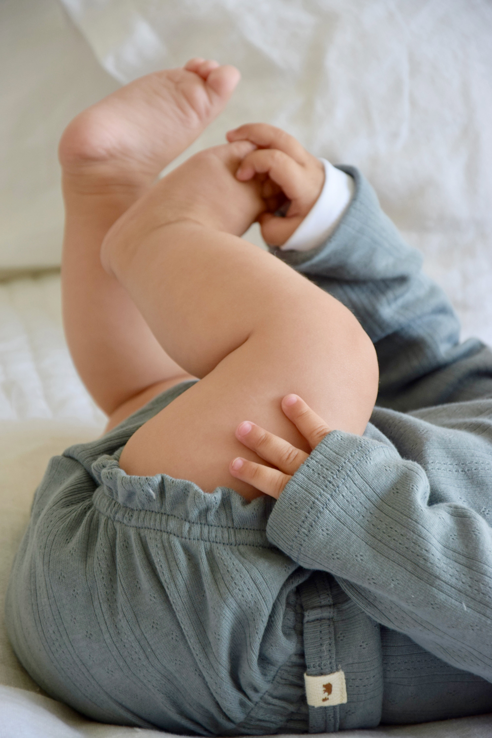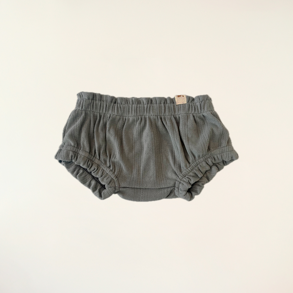 Bombacho de algodón pima calado, perfecto para usar sobre pañal con comodidad. Un básico romántico en un color suave y delicado.