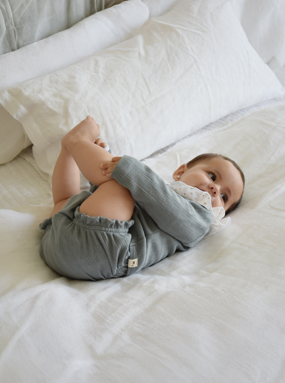 Delantal de algodón pima calado, ideal para complementar cualquier look con un detalle sutil y encantador en un color romántico y delicado.