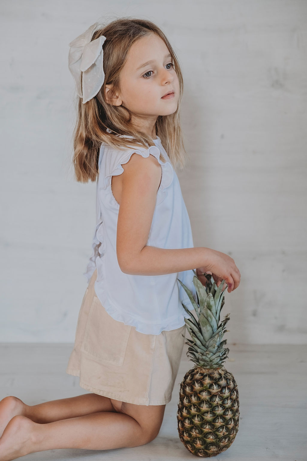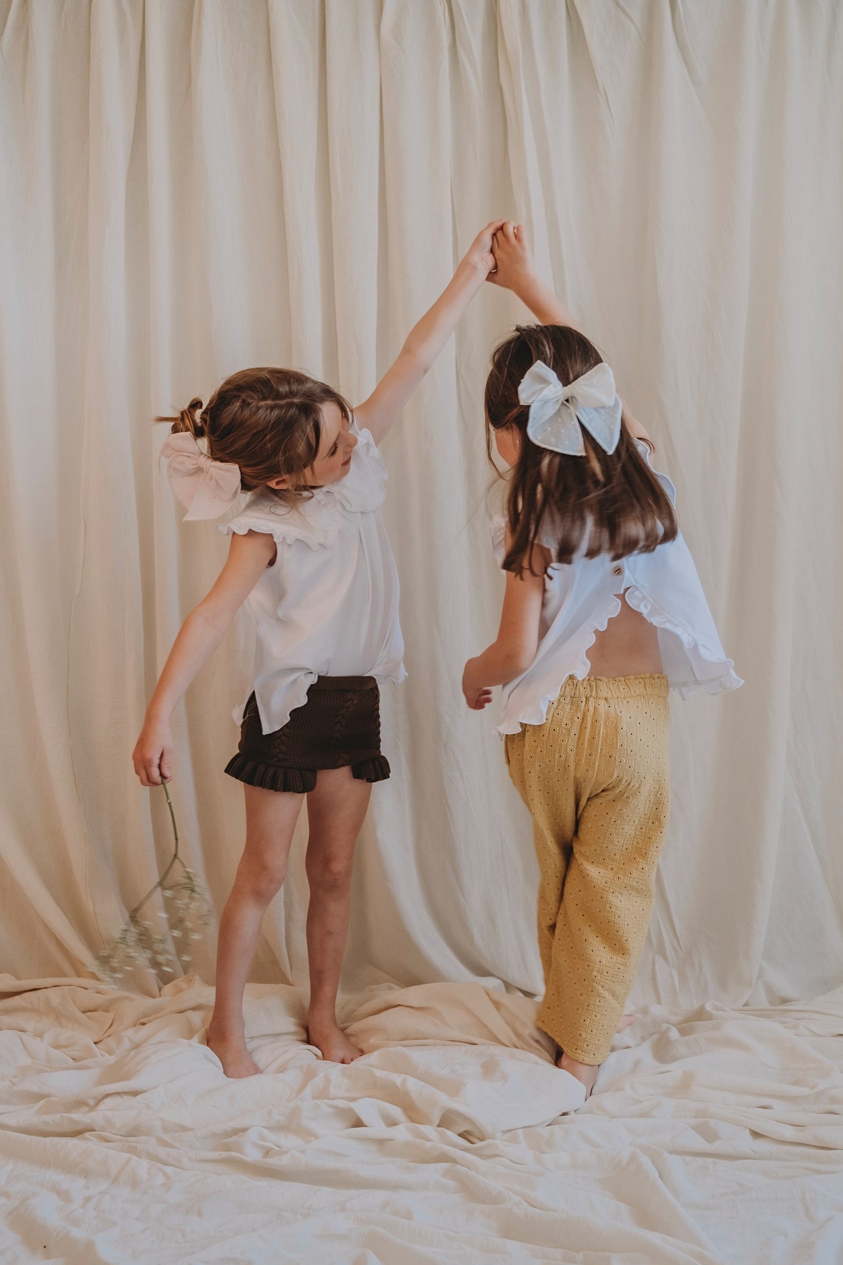 Una polera pensada para los días más dulces: suave, ligera y con un diseño boho que enamora. Su espalda abierta con botones y volantitos le da ese toque especial que hace que cualquier look se vea más tierno y veraniego. Los vuelos en las mangas y el movimiento de la tela la hacen perfecta para jugar, correr y estar cómod@s todo el día. Ideal para combinar con bloomers o shorts y crear un conjunto adorable y fresco.